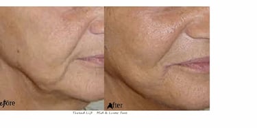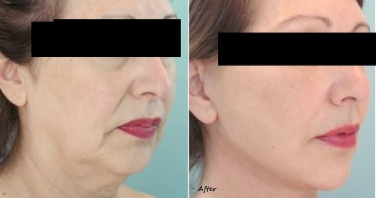 Before: 55 years old, with sagging in mid & lower face and with appearance of grooves around mouth - nasolabial grooves, marionette lines and jowls.