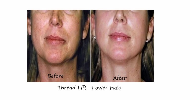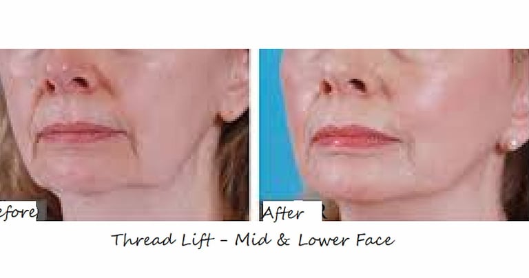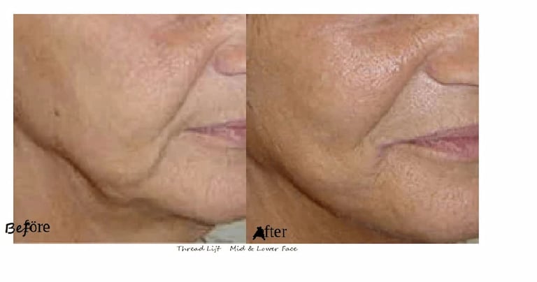 Before: 40 years old, with sagging in mid & lower face and with appearance of grooves around mouth - nasolabial grooves, marionette lines and jowls.